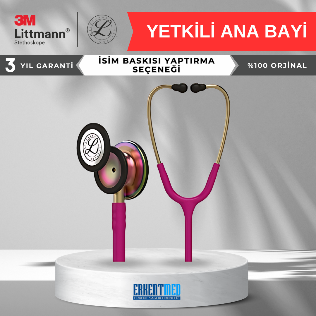 Erkent Medikal olarak, 1998 yılından itibaren Türkiye’de 3M Littmann stetoskoplarının resmi bayisi olarak faaliyet gösteriyoruz. Littmann stetoskoplarını lazerle kişiselleştirme konusunda sektörün en kaliteli hizmetini sunmaktayız. Lazer baskı işlemi, zarif ve hassas bir yöntem olup, stetoskoplarınıza zarar vermeden kalıcı bir iz bırakır. Lazerle yazılan isimler, zamanla silinmez ve uzun süre dayanıklıdır. Bu işlem, son teknoloji fiber markalama makineleriyle yapılır ve stetoskopunuza ömür boyu kalıcı olur. Kişisel özelleştirilmiş ürünlerinizin kaybolmasını ya da karışmasını engelleyerek yoğun çalışma koşullarında rahatlık sağlar. Kişiselleştirilmiş ürünler için firmamızdan kaynaklı hatalar dışında değişim veya iade yapılamaz.