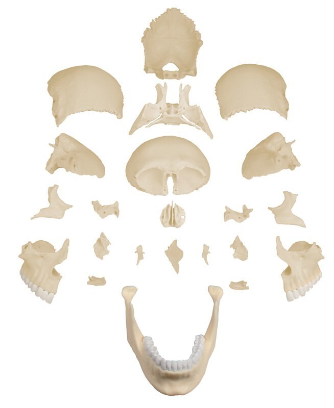 Bu etkileyici yetişkin kafatası modeli demonte edilebilen 22 ayrı kemik parçasından oluşmaktadır.
