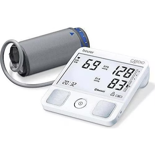 Beurer BM 95, üst koldan tam otomatik tansiyon ve nabız ölçümü yapan bir cihaz olup, aynı zamanda EKG (elektrokardiyogram) kaydı yapma özelliğine sahiptir. Akıllı telefonunuzla Bluetooth® Smart bağlantısı aracılığıyla ölçüm verilerinizi kolayca aktarabilir ve Beurer CardioExpert uygulaması ile ayrıntılı analizler yapabilirsiniz. Bu cihaz, gelişmiş aritmi tespiti özelliği ile atriyal fibrilasyon ve ekstrasistoller gibi kalp ritmi anormalliklerini belirleyebilir. 1 kanal EKG kaydı ile kalp ritminizi izleyebilir ve bu verileri bilgisayarınıza USB kablosu ile aktarabilirsiniz.