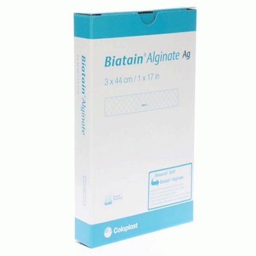 Biatain® Aljinat Ag, aljinat, karboksimetilselüloz (KMS) ve bir iyonik gümüş kompleksinden oluşan bir aljinat pansumandır.