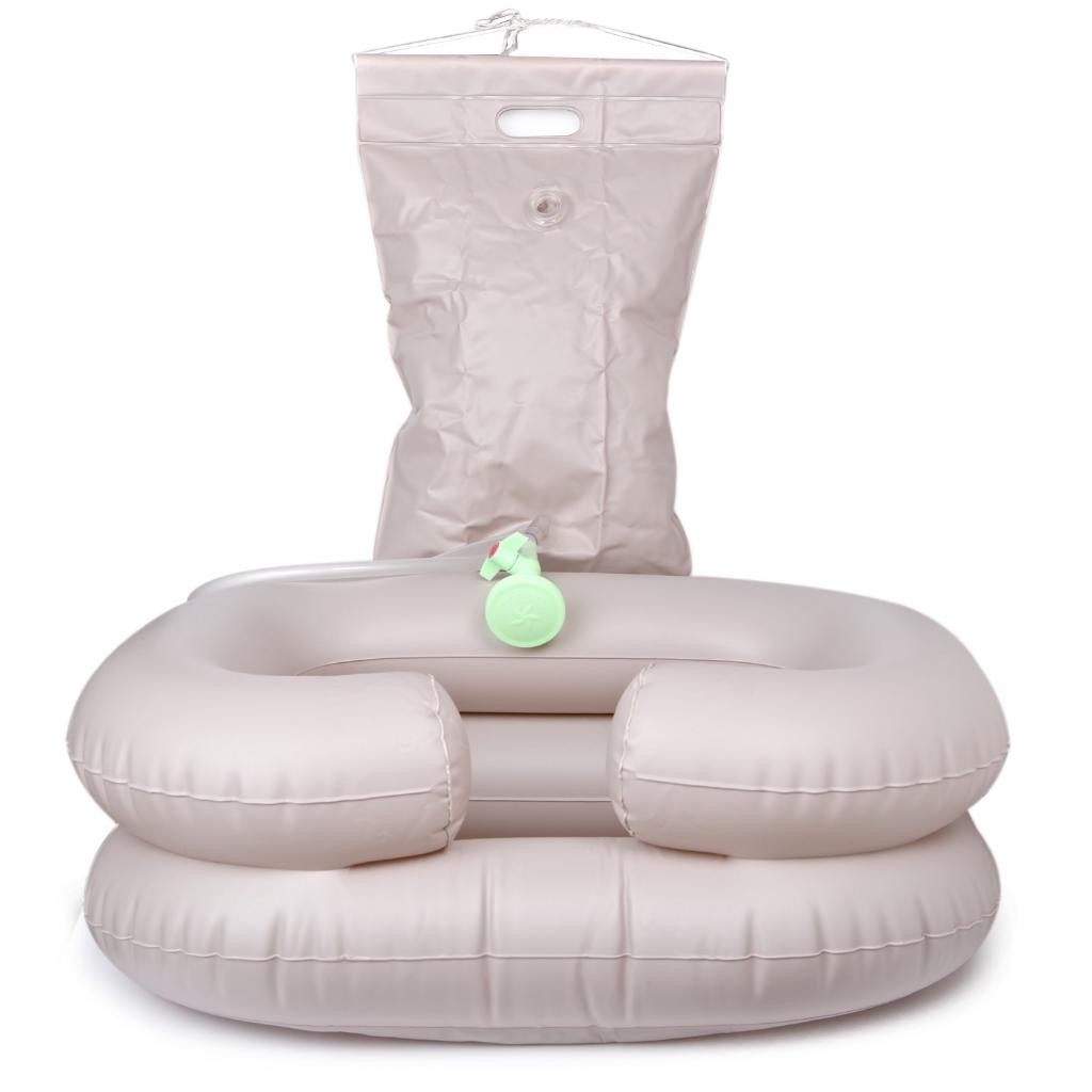 Şişirilebilen yıkama küveti ile kullanmak için mobil duş idealdir.