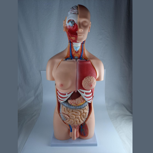 ERKENTMED T13 Kadın/Erkek Torso Modeli, insan vücudunun anatomik yapısını detaylı bir şekilde göstermek için tasarlanmış eğitim modelidir. 23 parçadan oluşan bu model, iç organlar, kemikler, kaslar ve damar yapılarıyla gerçekçi bir şekilde tasarlanmıştır. Eğitim ve öğretim amaçlı kullanım için ideal olup, anatomi, tıp, biyoloji derslerinde kullanılabilir.