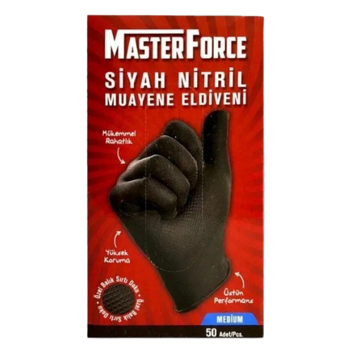 Master Force siyah nitril eldivenler, üstün koruma ve konfor sunan, dayanıklı ve esnek yapısıyla birçok sektörde kullanılabilen eldivenlerdir. Orta boy (Medium) seçeneğiyle hassasiyet