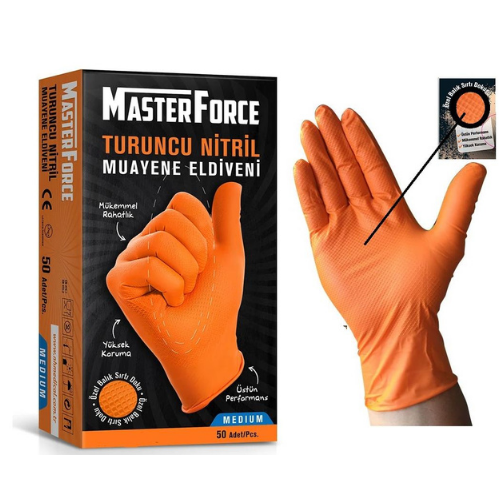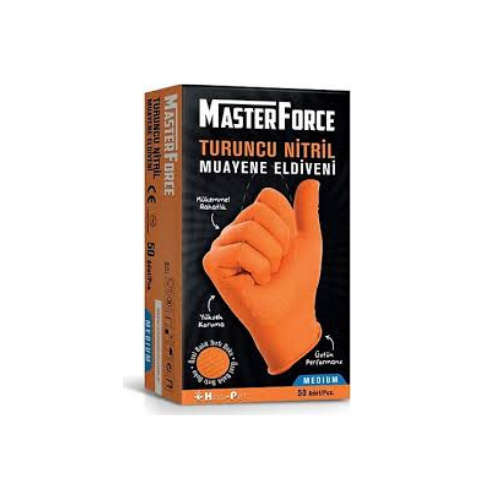 HASPET MASTER FORCE TURUNCU NİTRİL MEDİUM ELDİVEN 1 KUTU=50 ADET