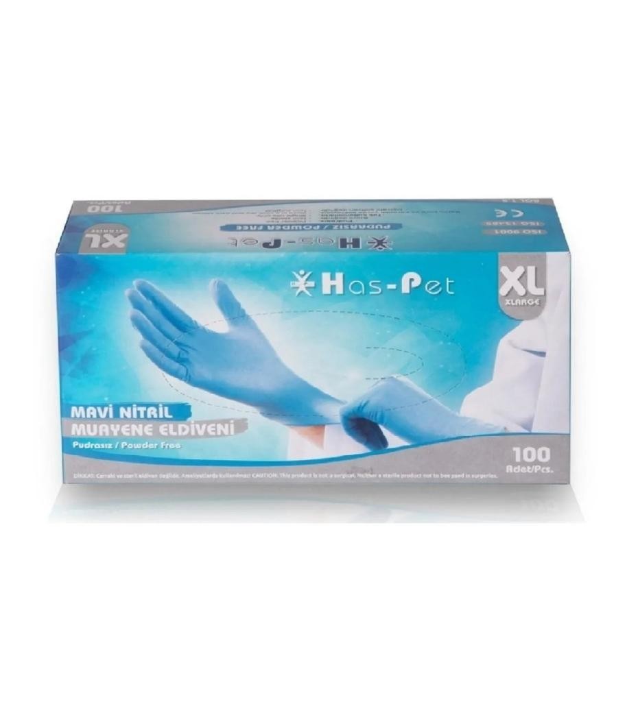 Has-Pet Mavi Nitril Pudrasız Muayene Eldiveni XLarge 100'lü