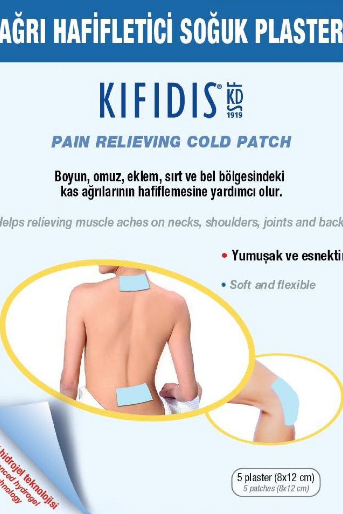 Boyun, omuz, eklem, sırt ve bel bölgesindeki kasağrılarının hafiflemesine yardımcı olur. 1 pakette 5 flaster bulunmaktadır.