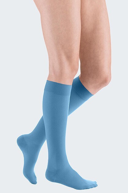 Mediven Plus CCL2 Diz Altı Petite Kapalı Burun Lıght - Blue - III, özel olarak petite (küçük beden) bacak yapısına uygun tasarlanmış, kapalı burun yapısı sayesinde dayanıklılığı artırılmış bir varis çorabıdır. Ürün, CCL2 kompresyon standardına göre üretilmiş olup 23-32 mmHg basınç uygulayarak alt ekstremitelerdeki venöz dolaşımı destekler.