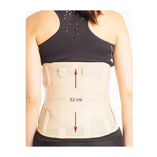 Bel bölgesinde bulunan plastik/çelik balenleri vertabranın lombar ve sacral disklerini içine alacak şekilde yerleştiriniz ve cırt bantları önde karın üzerinde birleştiriniz.