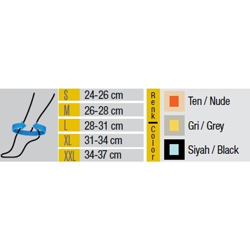 İç yüzeyinde așil tendonu kaplayan silikon pedler sayesinde tendon üzerindeki baskıyı alarak, silikon topuk yükselticisi sayesinde tendonu rahatlatır.