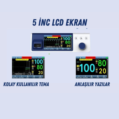 Parmağa takılan sensör sayesinde hemoglobindeki oksijen doygunluk oranını (SpO₂) ve kalp atış hızını optik yöntemle ölçerek ekranında anlık olarak gösterir. Alarm sistemi sayesinde kritik durumlarda kullanıcıyı uyarır.