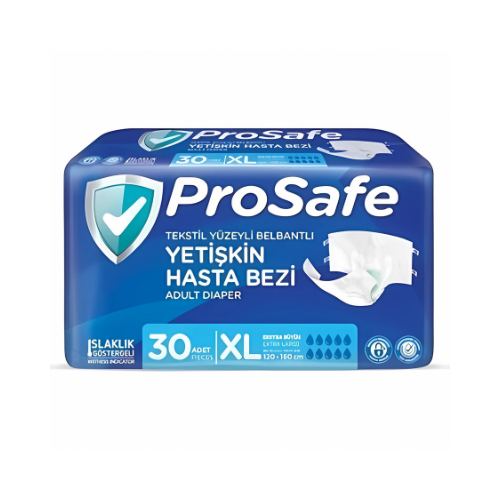 Prosafe Yetişkin Hasta Bezi, özel tasarımı ve üstün emiciliği ile kullanıcılara yüksek konfor ve güvenlik sunar. XL-Extra Large boyutu, büyük beden kullanıcılar için mükemmel uyum sağlar.