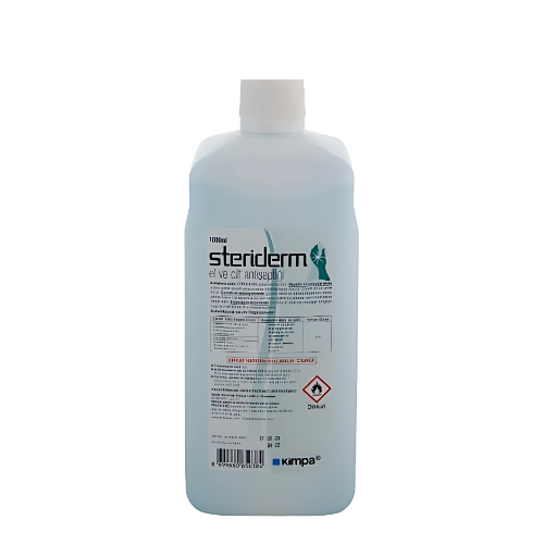 Steriderm El ve Cilt Antiseptiği, 1 litrelik (1000 ml) ambalajında sunulan, alkol bazlı hızlı etkili bir dezenfektandır. Ameliyat ve enjeksiyon öncesinde el ve cilt antisepsisinin sağlanması gereken durumlarda kullanıma hazır bir likit antiseptiktir.