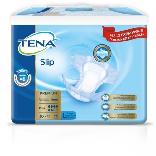 TENA Slip Premium Plus Yetişkin Hasta Bezi, çift katlı emici tabakası sayesinde, yüksek koruma ve üstün kuruluk sağlar. Tamamen nefes alabilen yumuşak tekstil dış yüzeyi ile cilt sağlığını korumaya yardımcı olur. Defalarca açılıp kapanabilen cırt bantları ve esnek bel bandı, bezin vücuda tam ve güvenli bir şekilde oturmasını sağlar. Islaklık göstergesi, renk değiştirerek bezin değişim zamanını takip etmeye yardımcı olur. Yeni esnek bel bandı bezin sırt-bel bölgesine sıkı ve güvenli bir şekilde oturmasını sağlar. Dermatolojik olarak test edilmiştir. Daha fazla konfor sunmak üzere yumuşak ve cilde dosttur.