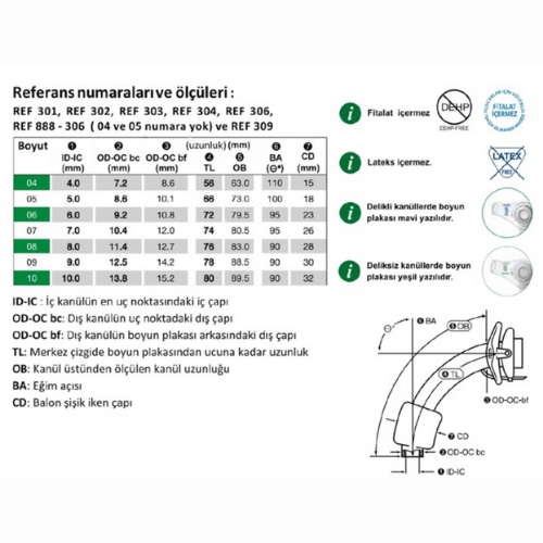 Solunum ve ventilasyon için lümen mümkün olduğunca geniş olmalıdır – bu yüzden iç ölçüm verilir. Hasta için her milimetre sayar. Lümenin çapı 8’den 7 mm’ye düşerse, hava beslemesi% 41 daha azdır ve nefes almak için gereken çabada büyük bir artış vardır. 8 ile 9 mm arasında değişen değerler hava beslemesini% 60 artırırken, nefes almak için gereken çaba aynı kalıyor.