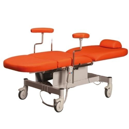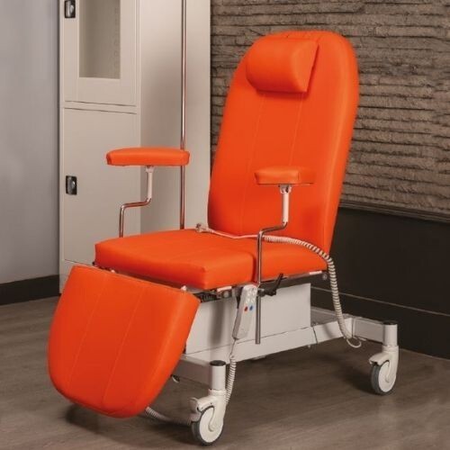 Elektrikli üç motorlu yapısıyla sırt, ayak ve Trendelenburg pozisyonlarını ayarlayabilen, konfor ve hijyen odaklı profesyonel kan alma koltuğudur.