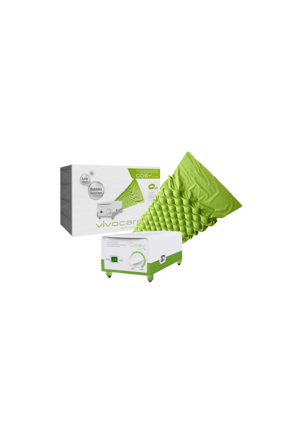 .Vivocare Cosy Ultra ayarlanabilir pompaya sahiptir. Anti-dekübitustur yani yarattığı masaj etkisiyle dokuyu oksijenle besler ve yatak yaralarının oluşmasını engeller. Baklava dilimli yapısı sayesinde yara oluşumunu engellemede en etkili yöntemdir. Hastanın ağırlığına göre basınç ayarlama özelliği vardır. Kolay temizlenebilir aksesuarları bulunur. Yapımında delinmelere karşı güçlü toksik olmayan PVC kullanılmıştır. .Daha az ses, daha az titreşim özelliği mevcuttur. Şişme yatak üzerindeki baloncuklar sayesinde dalgalı pompalama sağlar.